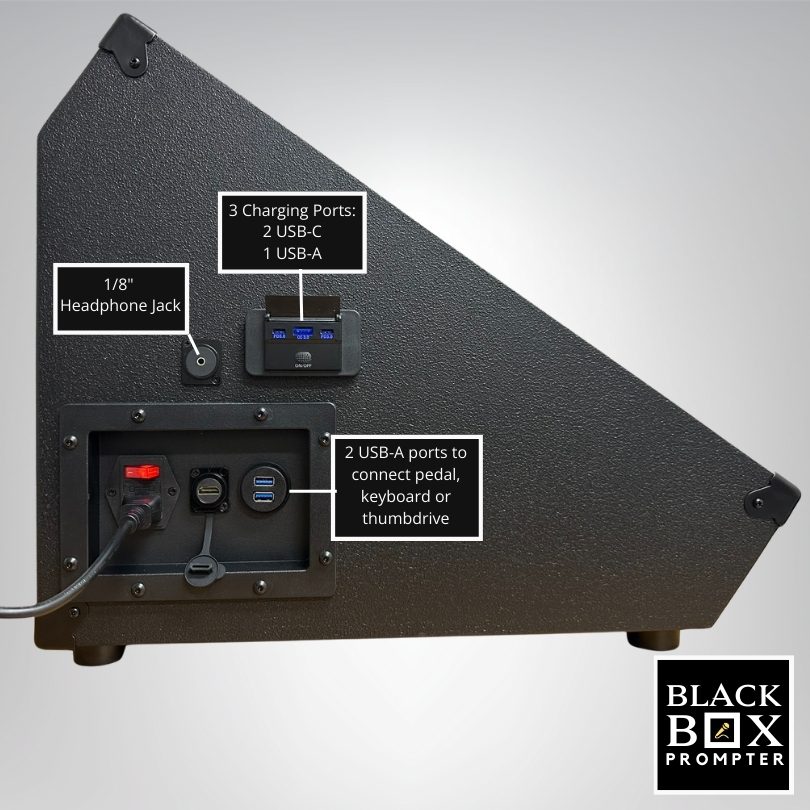 Whether you’re a solo artist playing at the coffee shop or a weekend warrior playing covers at pubs and private parties, the BLACK BOX Prompter is the must-have tool that will transform the way you perform live.